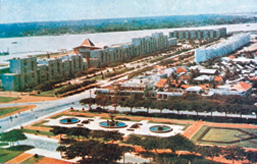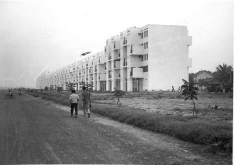 Part of what was prime, flat, reclaimed land with an unbroken view and breeze coming off the nearby rivers was developed in the early 1960s. It was built around the same time as Olympic Stadium, and designed by the same architect, Van Molyvann. At first it was planned as housing for visiting athletes for the 1966 Ganefo Games, a short-lived Asian alternative to the Olympics,